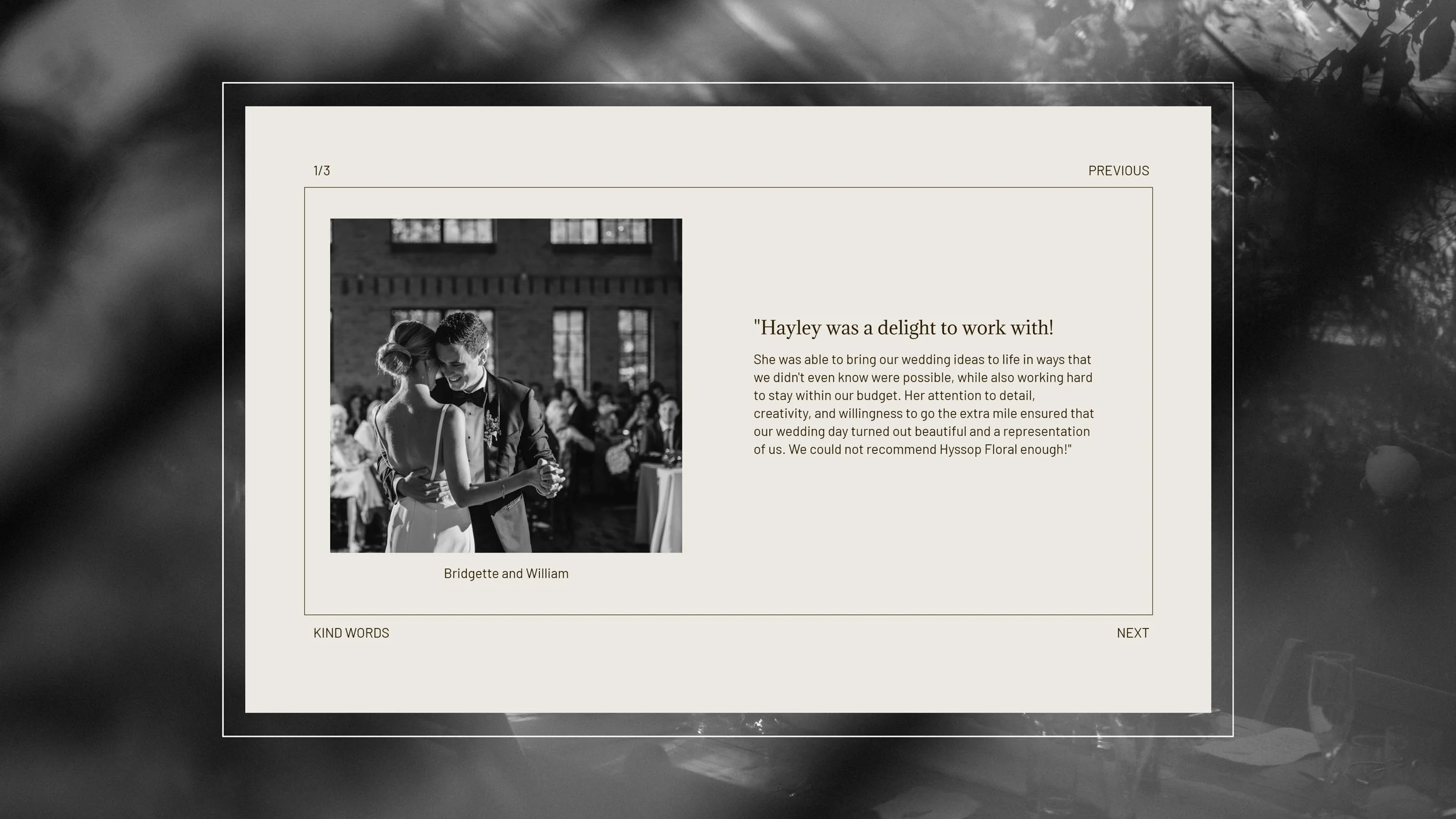 Hyssop foi criado por Hayley e Zach. É um pequeno estúdio de flores, localizado em Michigan, nos Estados Unidos.